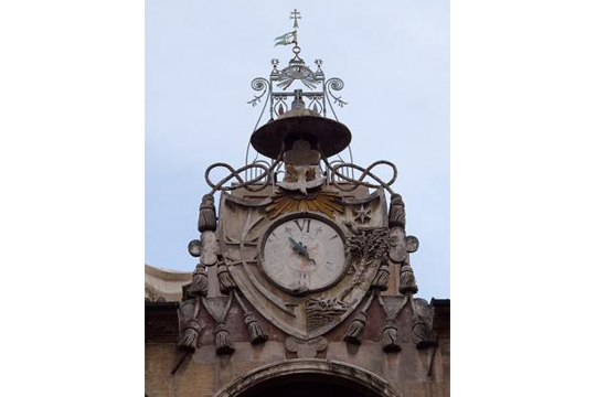 L'orologio fu commissionato e fatto istallare dal commendatore Antonio Maria Pallavicini e modificato nel 1828 da Mons. Ludovico Gazzoli.