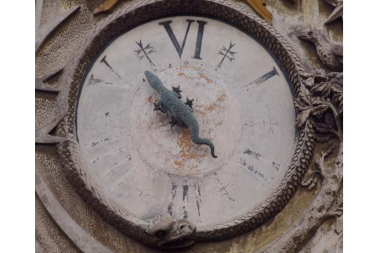 All'interno del cortile monumentale del Palazzo del Commendatore afferente al Complesso Monumentale di Santo Spirito in Sassia, di fronte all'ingresso, in corrispondenza del loggiato superiore, si trova il grande orologio circolare, a sei ore, posto al centro dello stemma della famiglia del Precettore, Mons. Ludovico Gazzoli (1774-1858).
