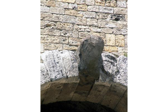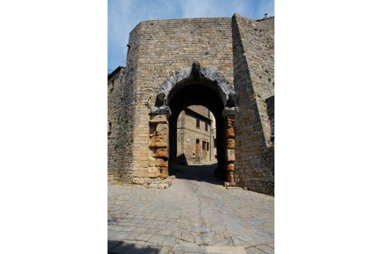 È la più nota porta etrusca, conosciuta sia per la presenza dell’arco che per la singolare decorazione con le tre teste in pietra, che ne fanno un unicum nelle architetture etrusche.